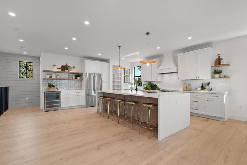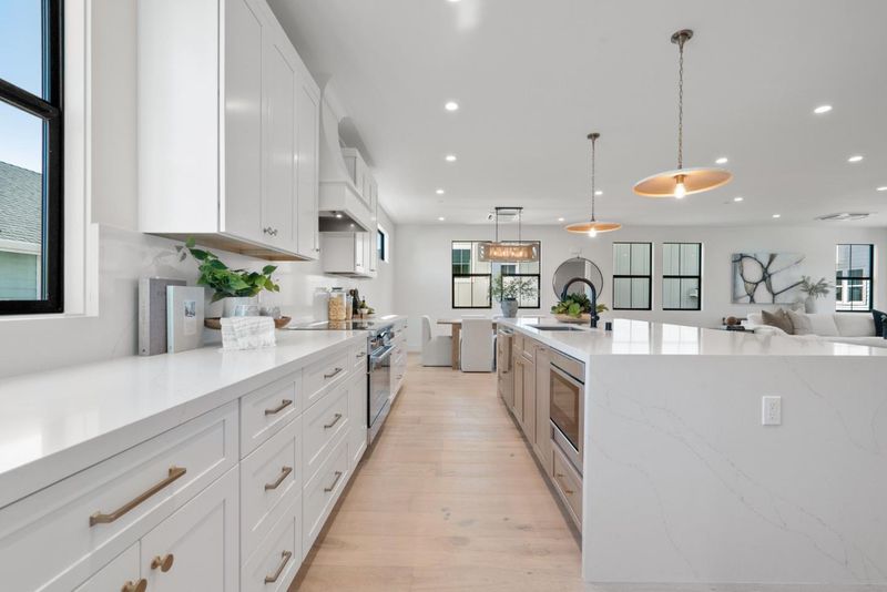 - Countertop - Quartz, Dishwasher, Exhaust Fan, Garbage Disposal, Hood Over Range, Ice Maker, Island, Island with Sink, Microwave, Pantry, Refrigerator, Wine Refrigerator