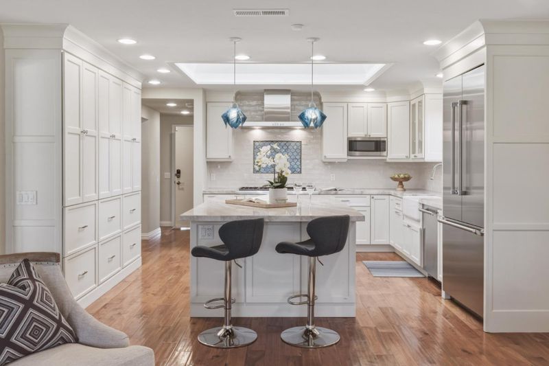 - Cooktop - Gas, Countertop - Stone, Dishwasher, Exhaust Fan, Hood Over Range, Island, Microwave, Oven - Double, Oven Range - Built-In, Oven Range - Electric, Oven Range - Gas, Refrigerator, Skylight
