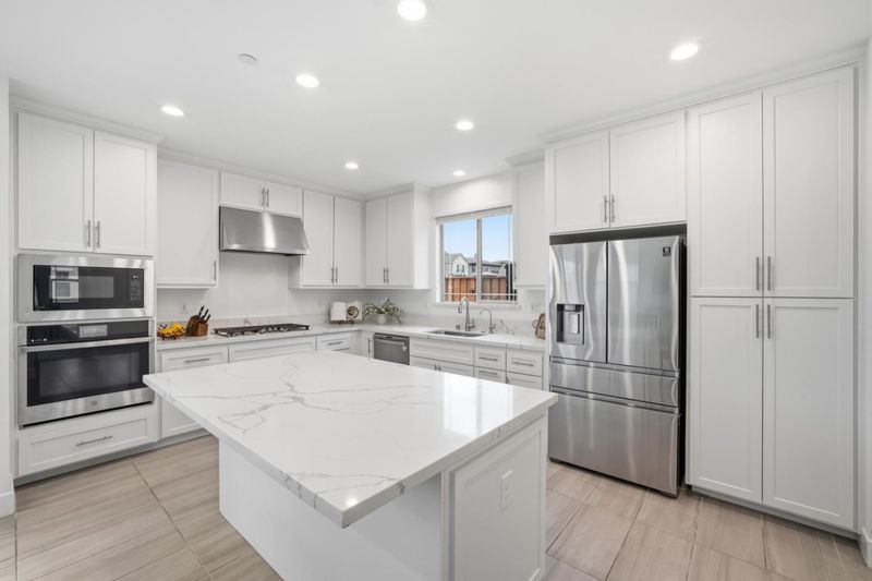 - Countertop - Quartz, Exhaust Fan, Island, Microwave, Oven Range, Refrigerator