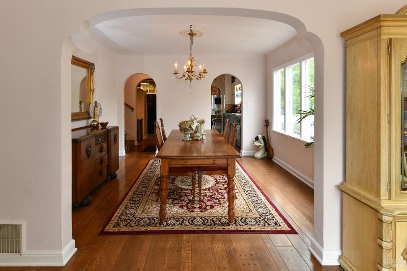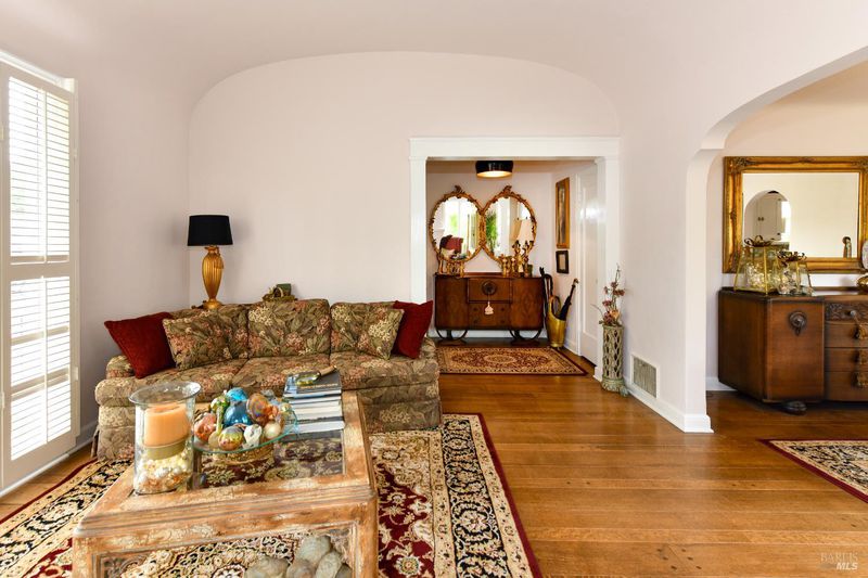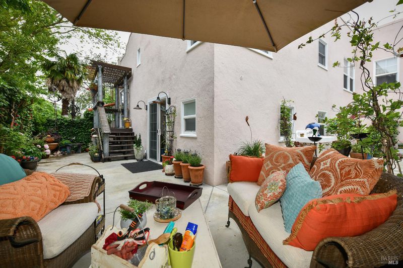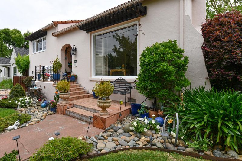 This Circa 1937 Spanish Colonial-style home sits on a coveted corner of Old Town Montgomery Street, offering bright southern exposure and a warm, welcoming feel throughout. Inside, beautiful hardwood and tile flooring complement light-filled living spaces including the living room, dining room, kitchen, and breakfast nook. The flexible third bedroom is currently arranged as an office/sitting area off the primary bedroom. A separate entrance to the downstairs flex room adds options for work, hobbies, or guests. Step outside to a meticulously landscaped private courtyard arranged for relaxing and entertaining then head downtown in minutes and enjoy Napa's dining, tasting rooms, entertainment and nearby shops.