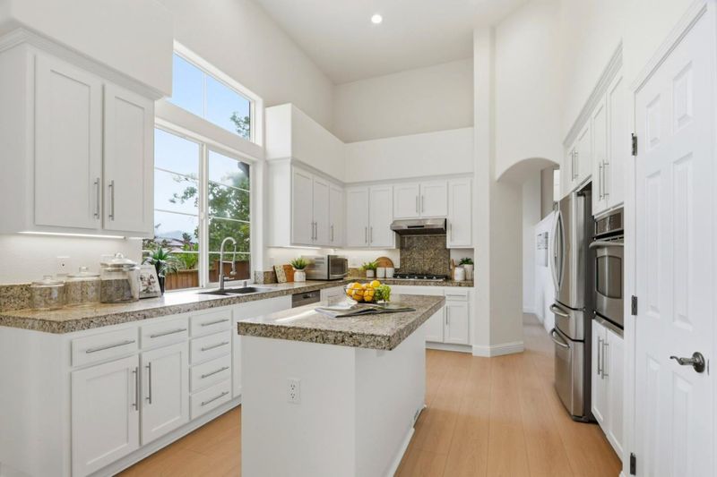 - Cooktop - Gas, Countertop - Granite, Dishwasher, Exhaust Fan, Garbage Disposal, Hood Over Range, Hookups - Gas, Island, Microwave, Oven - Built-In, Oven - Electric, Oven - Self Cleaning, Pantry, Refrigerator