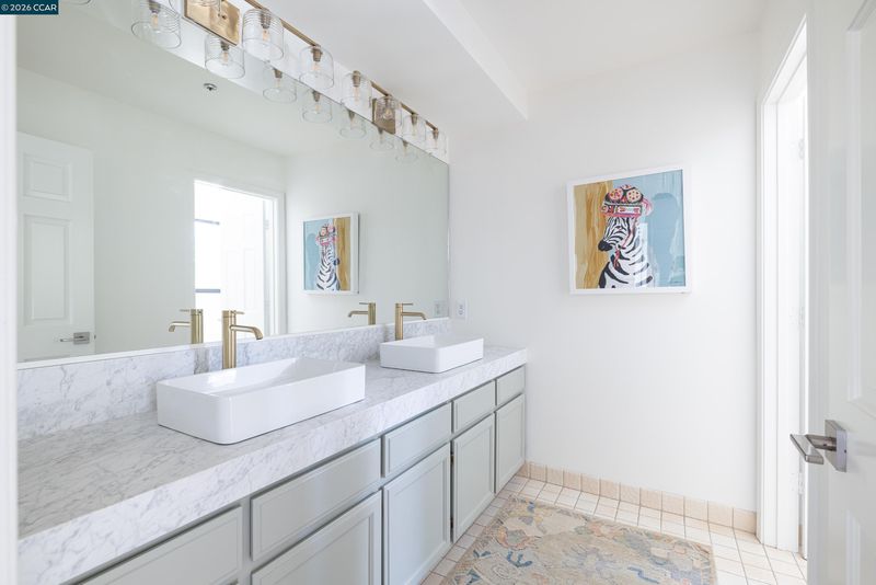 - Shower Over Tub, Solid Surface, Tile, Updated Baths, Double Vanity, Marble, Stone, Window