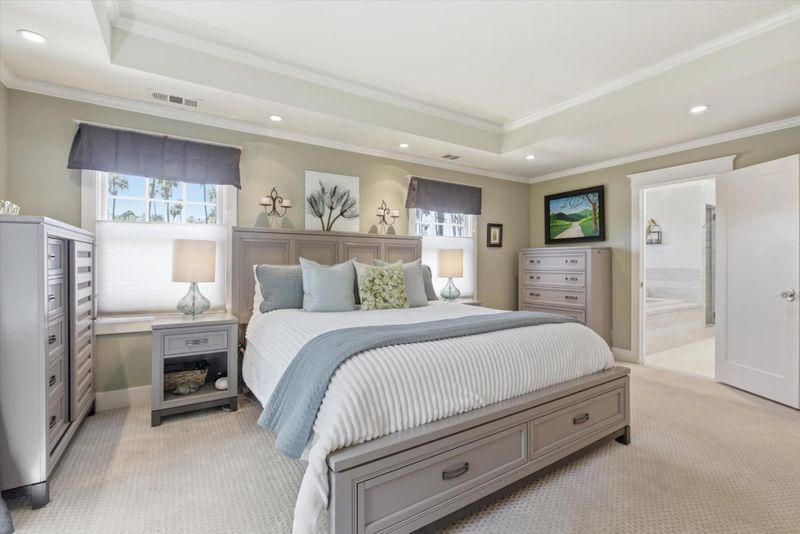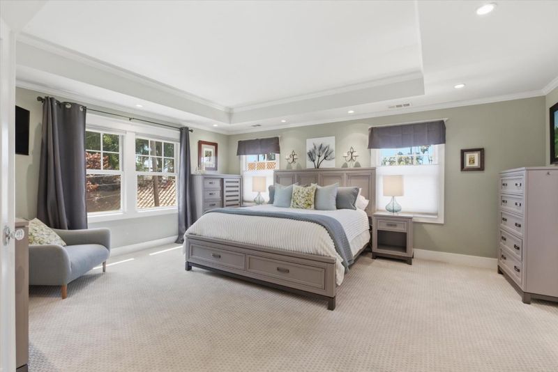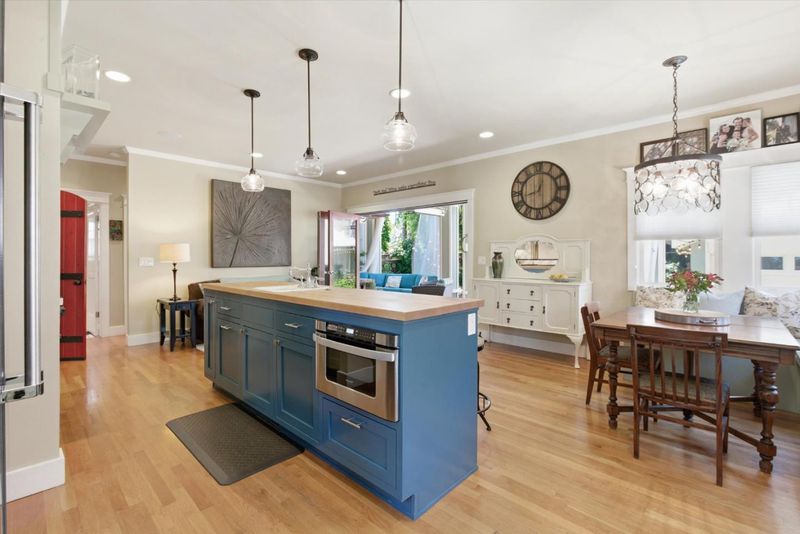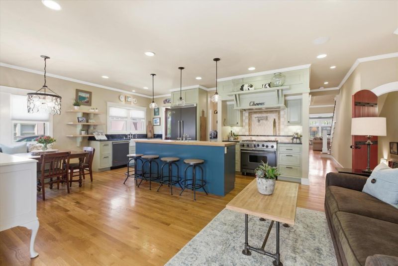Situated in the heart of historic Palm Haven, San Jose's iconic 1913 residence park community in Willow Glen. This exceptional home overlooks the signature greenbelt framed by soaring heritage palms. Extensively updated while preserving its vintage character, the home features warm hardwood floors, custom solid wood doors, vintage hardware, and period-inspired tilework. A formal entry with mosaic tile leads to a grand dining room with French doors opening to a charming side deck. The living room showcases a classic tile fireplace, complemented by a private study and main-level bedroom with adjacent bath. The chefs kitchen with high-end, Viking appliances, natural stone counters, and center island flows seamlessly into the family room and out to a remarkable covered deck with heaters, fans, sound system, and custom drapes; ideal for year-round entertaining. Upstairs offers spacious bedrooms including a serene primary suite. Finished basement with wine storage.