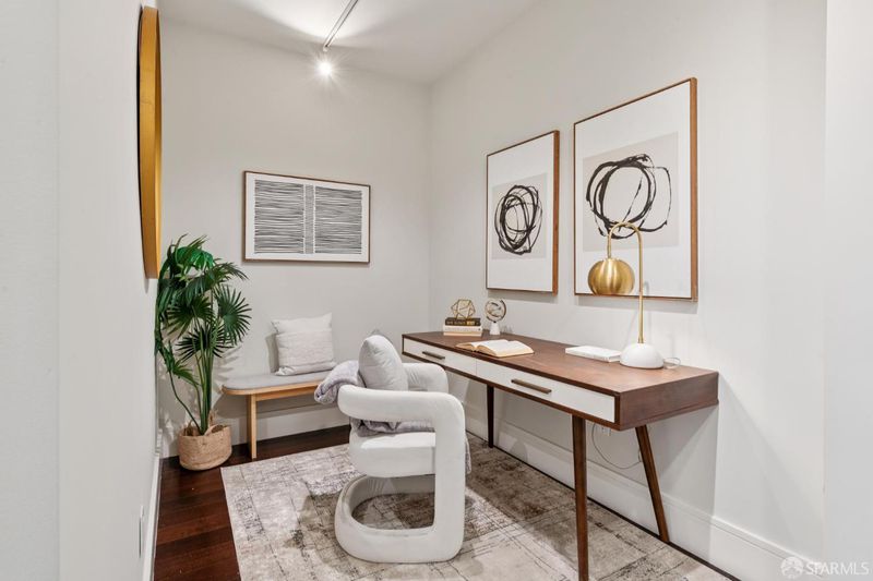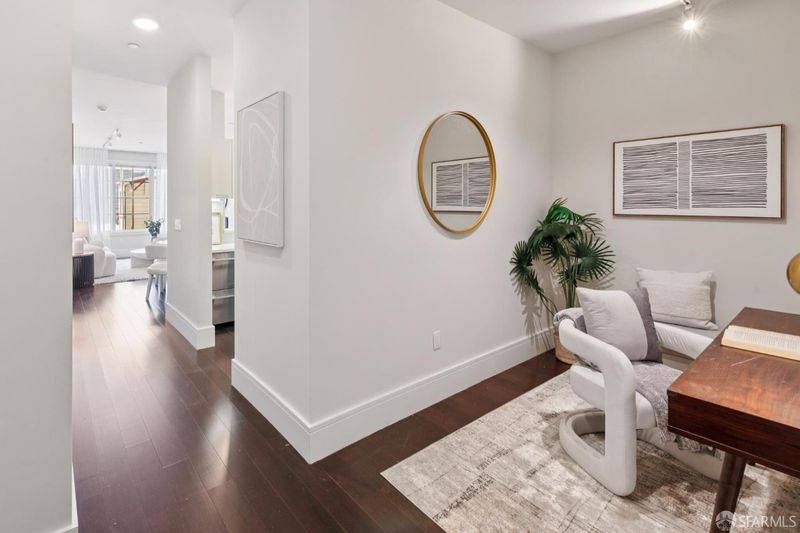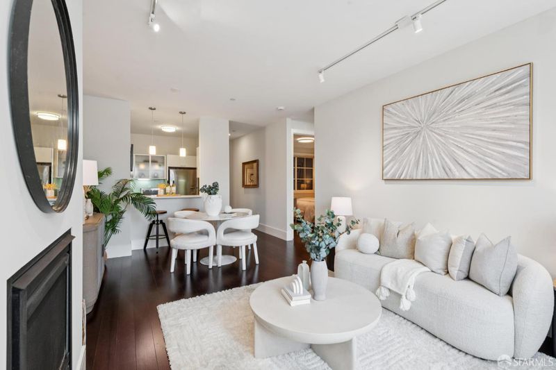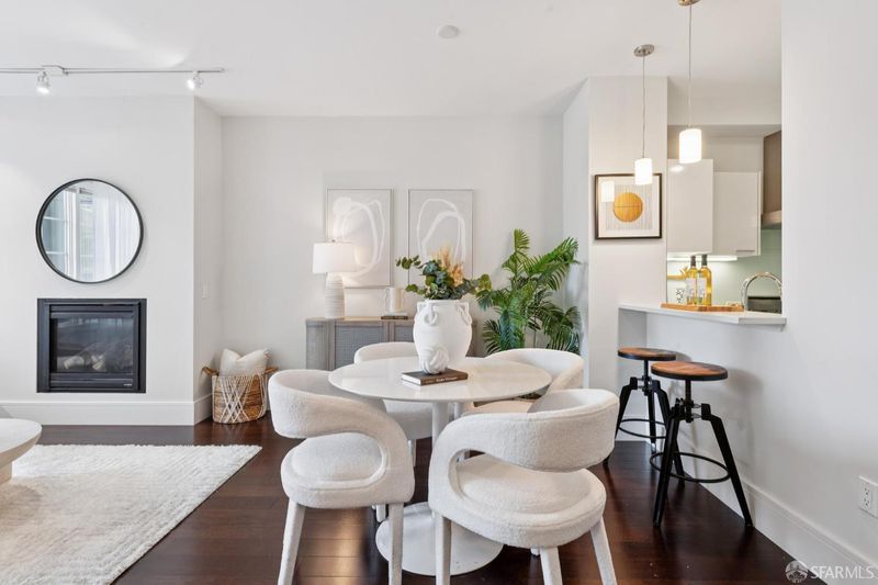 Positioned at the coveted intersection of Russian Hill and Nob Hill, this beautifully appointed 2-bedroom + den residence offers a refined living experience in one of San Francisco's most sought-after enclaves. Tall ceilings, solid hardwood floors, and a gas fireplace anchor the open-concept interiors, creating a sense of volume and warmth throughout the main living and dining spaces. The layout is thoughtfully arranged to provide both openness and privacy, with the primary suite set apart on one side of the home and the secondary bedroom positioned on the other. The gourmet kitchen, featuring a Viking range and custom finishes, connects seamlessly to the living areas, supporting both everyday living and entertaining. A separate den offers a dedicated space for a home office or creative use, adding flexibility without sacrificing the functionality of a full second bedroom. The primary suite is designed as a quiet retreat with generous closet space, while the second bedroom is well-proportioned and comfortably situated. Additional features include in-unit laundry, rare 2-car parking, and a building with elevator access. Residents enjoy a shared rooftop terrace with sweeping panoramic views of the Golden Gate Bridge and San Francisco Bay, providing a distinctive outdoor extension of the home. Ideally located near the Polk Street and Hyde Street corridors, the residence offers convenient access to a wide array of dining, cafes, and boutiques, along with close proximity to Pacific Heights and North Beach.