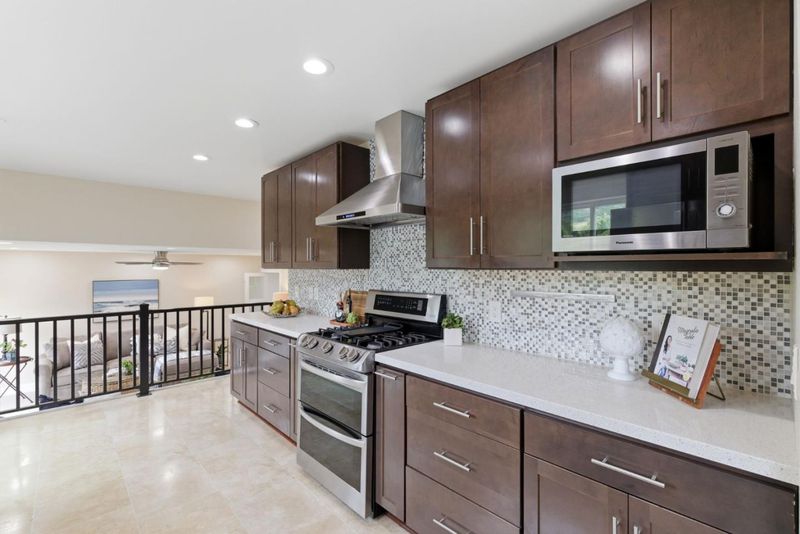 - Countertop - Quartz, Dishwasher, Exhaust Fan, Garbage Disposal, Hood Over Range, Microwave, Oven Range - Electric, Pantry, Refrigerator