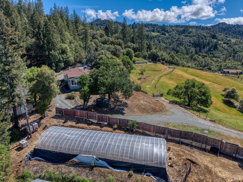 Stunning 10-Acre Country Retreat with Panoramic Hill Views!!! Discover the perfect blend of comfort, space, and rural charm with this beautiful ~1,700 sq ft manufactured home set on 10 picturesque acres. This well-maintained property offers three spacious bedrooms and two full bathrooms, designed for both relaxation and functionality. Step outside onto the inviting wrap-around porch and take in sweeping views of rolling hills that stretch for milesideal for morning coffee or evening sunsets. Inside, you'll find a thoughtfully designed layout featuring a large kitchen with an oversized pantry, perfect for storage and entertaining. The home is complemented by a detached two-car garage and a generous storage shed, providing ample space for tools, equipment, or hobbies. The land is fully enclosed with wire fencing, making it suitable for animals, gardening, or agricultural use. Water resources are a standout feature, with two wellsone dedicated to the home and a second for agricultural purposesalong with two 5,000-gallon storage tanks for added capacity and reliability. Additional features include a propane tank and expansive open space ready for your vision, whether it's farming, recreation, or simply enjoying peaceful country living.