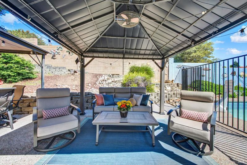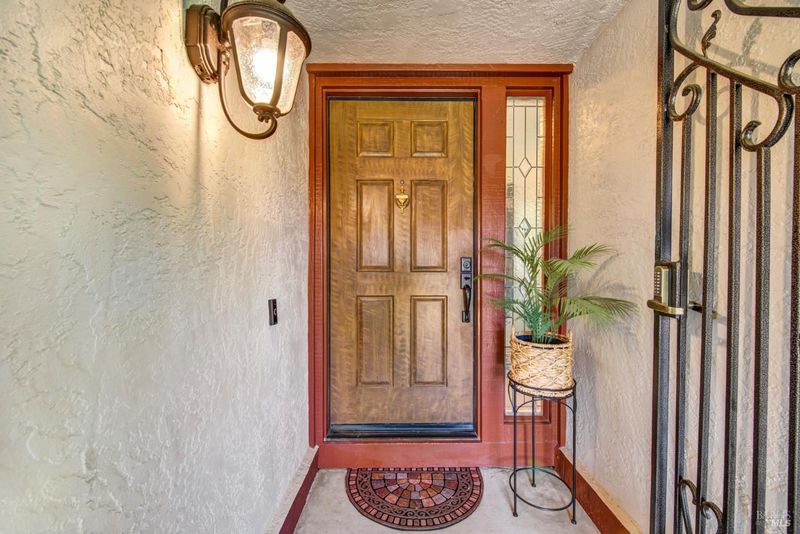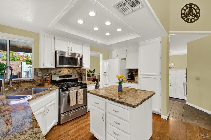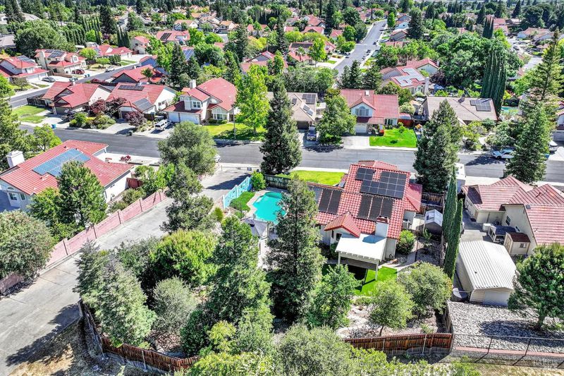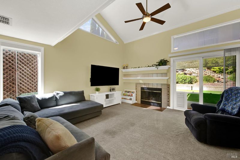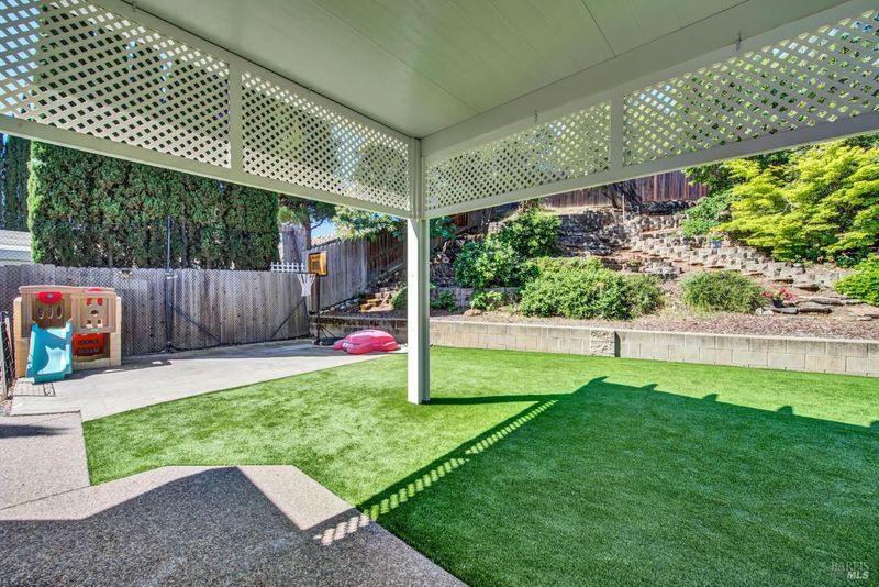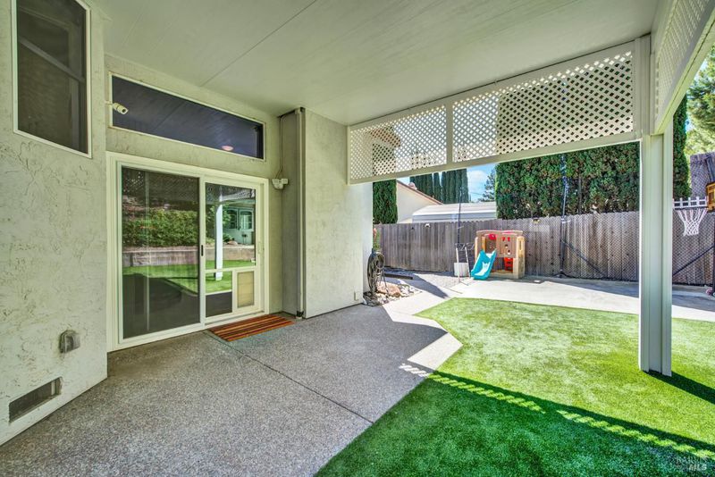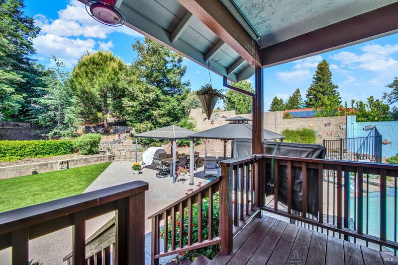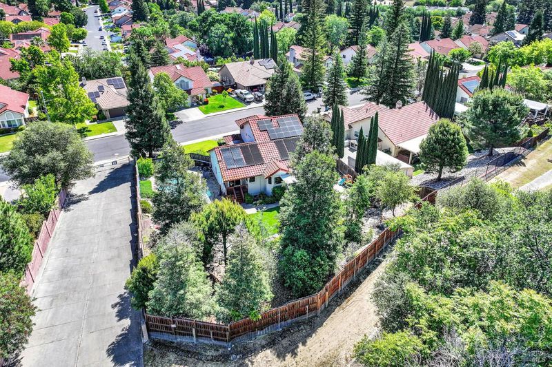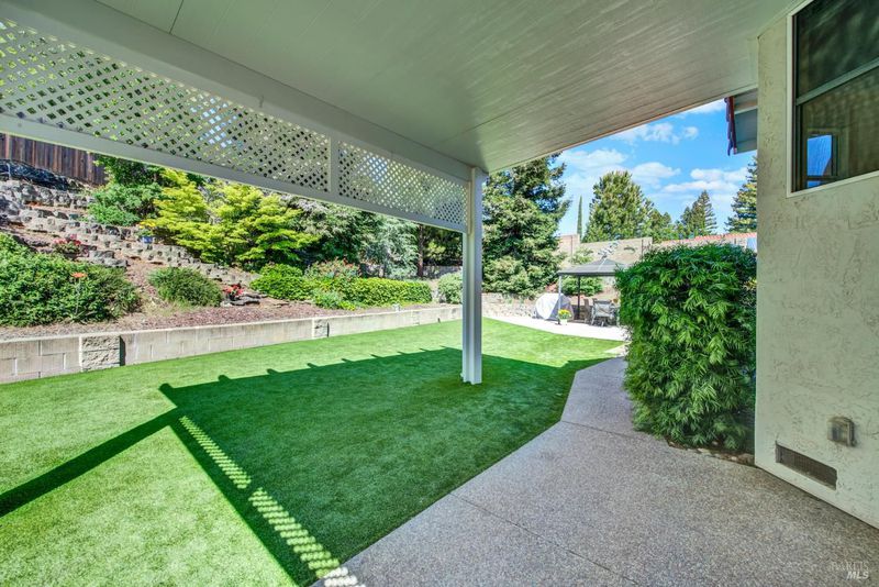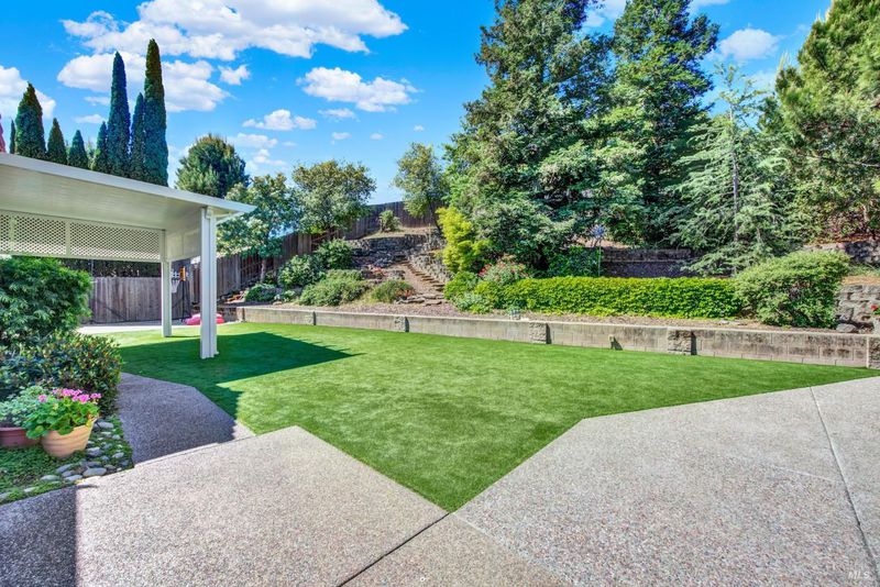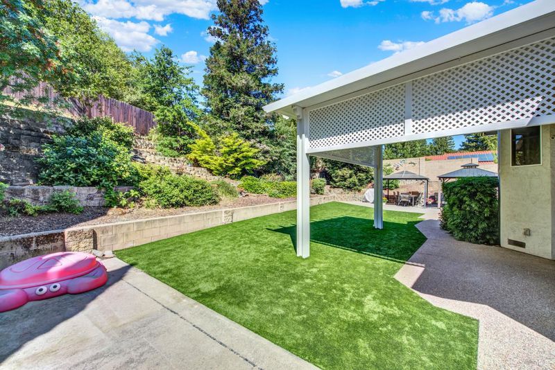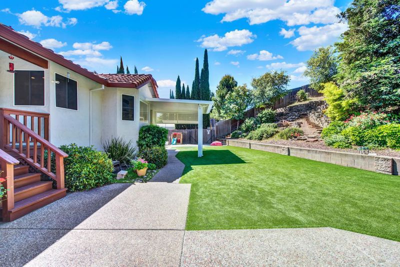 This extraordinary Browns Valley residence is a true standout, gracefully positioned on a sprawling 19,600 sq. ft. lot that offers exceptional seclusion with no rear neighbors and a serene, park-like backyard setting. The captivating outdoor space is a private oasis, featuring a glistening solar-heated pool, mature shade trees, lush manicured landscaping, sculpted retaining walls, and sweeping hillside views creating an idyllic backdrop for both quiet relaxation and memorable entertaining. Inside, the kitchen is a showpiece, beautifully appointed with crisp white cabinetry, striking granite countertops and a full backsplash, gleaming stainless steel appliances, and an inviting breakfast nook bathed in natural light with picturesque views. Throughout the home, you'll find an array of refined finishes including rich, warm-toned hardwood flooring, intricate crown molding, dramatic vaulted ceilings, stylish modern light fixtures, and a charming rustic wood barn door that adds character to the dining room, along with the added benefit of OWNED solar with a Generac generator and back-up battery. With 4 spacious bedrooms and 3 full bathrooms including a highly desirable main-level bedroom and full bath this home offers both flexibility and comfort for everyday living. The luxurious primary suite serves as a peaceful retreat, complete with an expansive walk-in closet and a beautifully remodeled ensuite featuring dual vessel sinks atop a granite vanity and a sleek glass-enclosed shower with dual shower heads for a spa-like experience. Designed with entertaining in mind, the backyard is an inviting haven, showcasing an insulated patio cover for year-round enjoyment, upgraded pool equipment, and low-maintenance artificial turf perfectly blending beauty and functionality in a truly versatile outdoor escape.