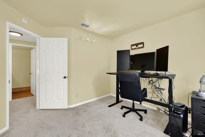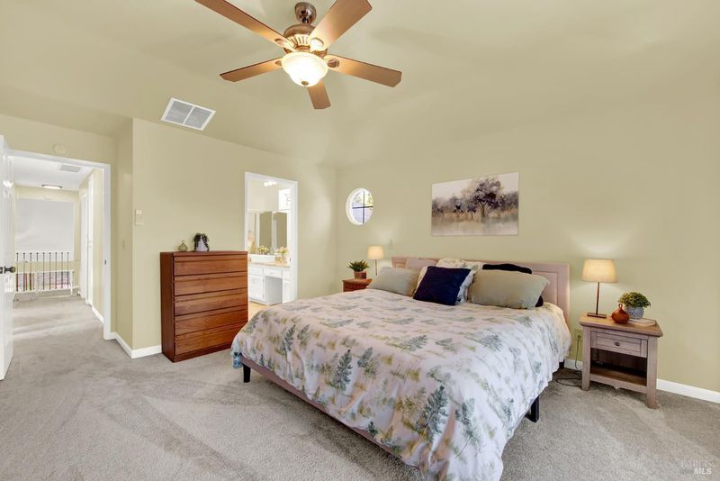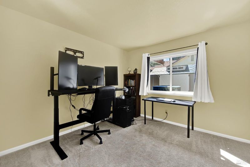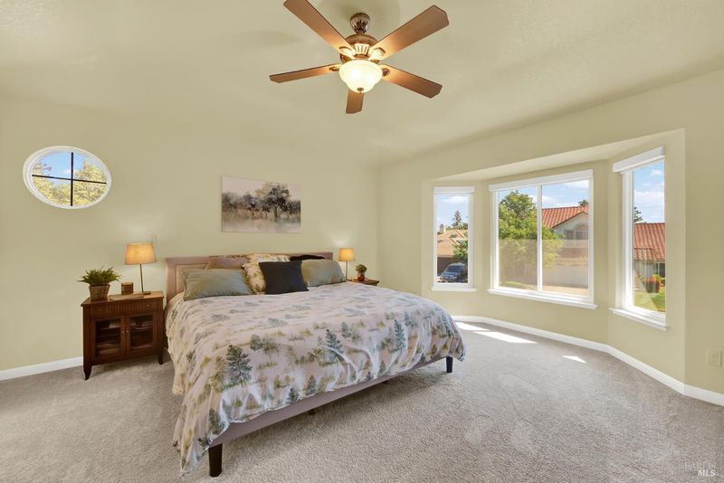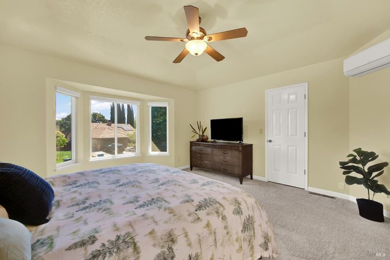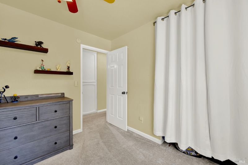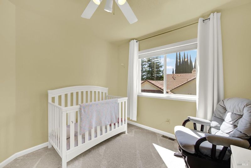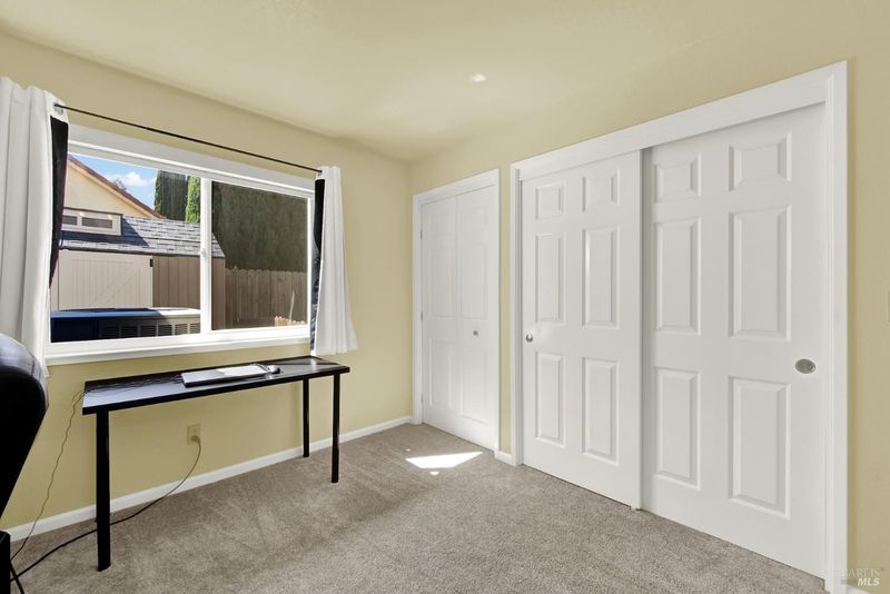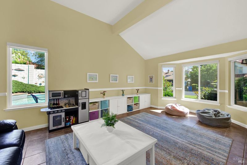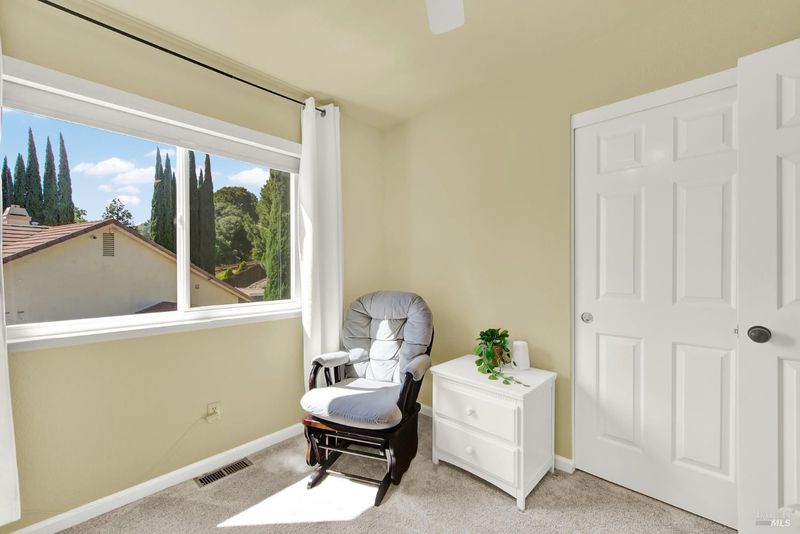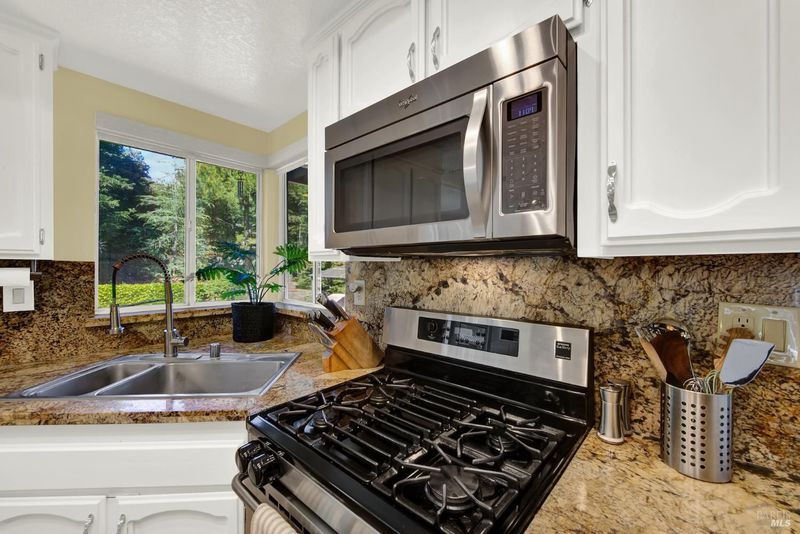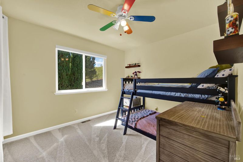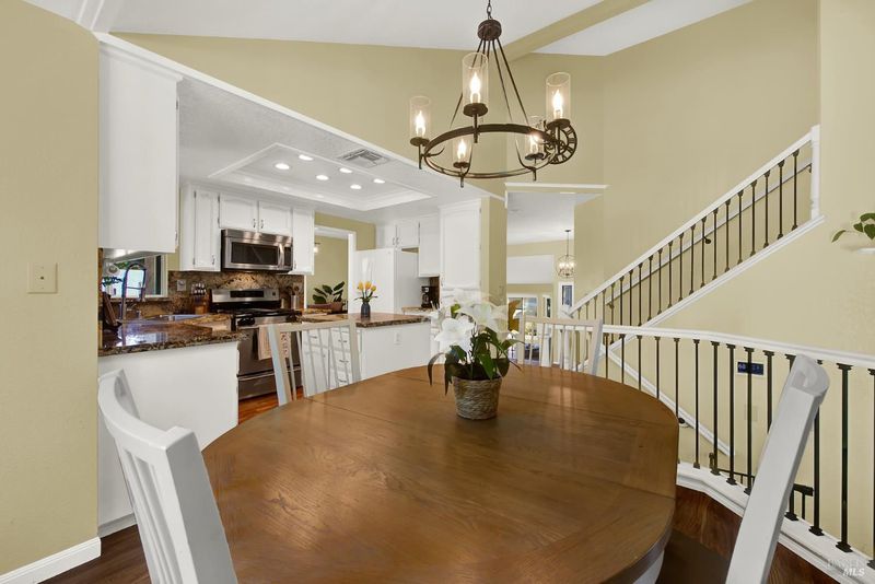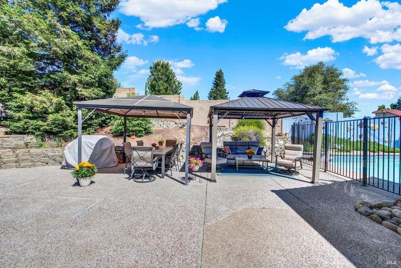 This extraordinary Browns Valley residence is a true standout, gracefully positioned on a sprawling 19,600 sq. ft. lot that offers exceptional seclusion with no rear neighbors and a serene, park-like backyard setting. The captivating outdoor space is a private oasis, featuring a glistening solar-heated pool, mature shade trees, lush manicured landscaping, sculpted retaining walls, and sweeping hillside views creating an idyllic backdrop for both quiet relaxation and memorable entertaining. Inside, the kitchen is a showpiece, beautifully appointed with crisp white cabinetry, striking granite countertops and a full backsplash, gleaming stainless steel appliances, and an inviting breakfast nook bathed in natural light with picturesque views. Throughout the home, you'll find an array of refined finishes including rich, warm-toned hardwood flooring, intricate crown molding, dramatic vaulted ceilings, stylish modern light fixtures, and a charming rustic wood barn door that adds character to the dining room, along with the added benefit of OWNED solar with a Generac generator and back-up battery. With 4 spacious bedrooms and 3 full bathrooms including a highly desirable main-level bedroom and full bath this home offers both flexibility and comfort for everyday living. The luxurious primary suite serves as a peaceful retreat, complete with an expansive walk-in closet and a beautifully remodeled ensuite featuring dual vessel sinks atop a granite vanity and a sleek glass-enclosed shower with dual shower heads for a spa-like experience. Designed with entertaining in mind, the backyard is an inviting haven, showcasing an insulated patio cover for year-round enjoyment, upgraded pool equipment, and low-maintenance artificial turf perfectly blending beauty and functionality in a truly versatile outdoor escape.