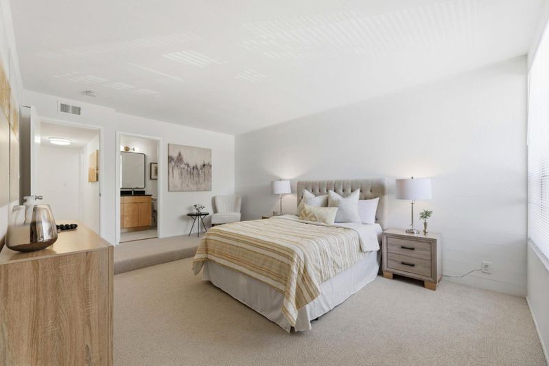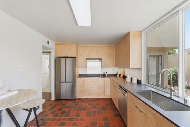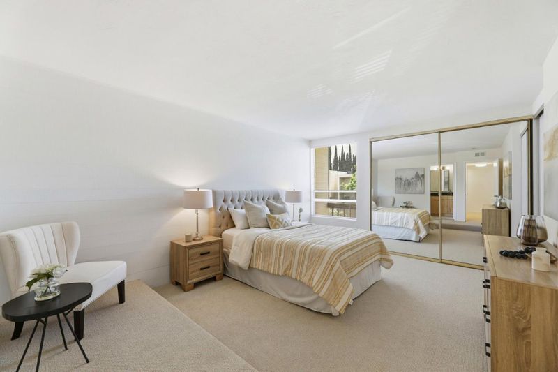 Bright, spacious, and private Mid-Century Modern Townhome, 1568 Sq Ft, 3 bedrooms and 2.5 baths.Freshly remodeled warm and contemporary kitchen with stunning custom natural birch wood cabinets, Silestone quartz countertops, and energy efficient stainless-steel appliances, Baths also newly remodeled, with MCM vibes in powder room and gorgeous shower in the Primary Bath. Includes new plumbing fixtures, custom birch cabinets, and quartz countertops. Move-in ready with freshened paint, new eco-friendly flooring in baths and laundry, and new carpet upstairs. Inviting dining room adjoined to large open beam ceiling living room with a classic mid-century freestanding fireplace. Expansive primary suite glows with afternoon sun, offering two large closets and open beam ceilings. Roomy laundry room, detached two car garage, and large driveway. Enclosed yard with low maintenance landscaping and large deck perfect, for entertaining and family activities. Very low HOA fees. Prime location near Apple, and other tech companies, as well as shopping and dining. Come Take a Look!
