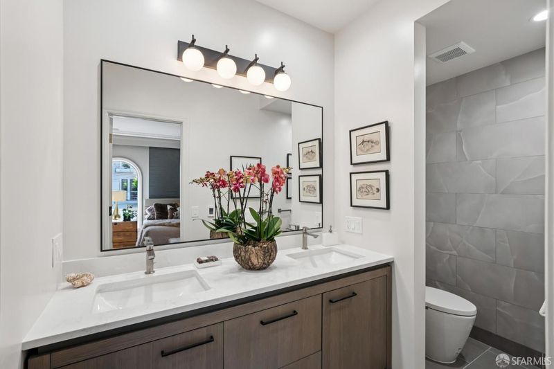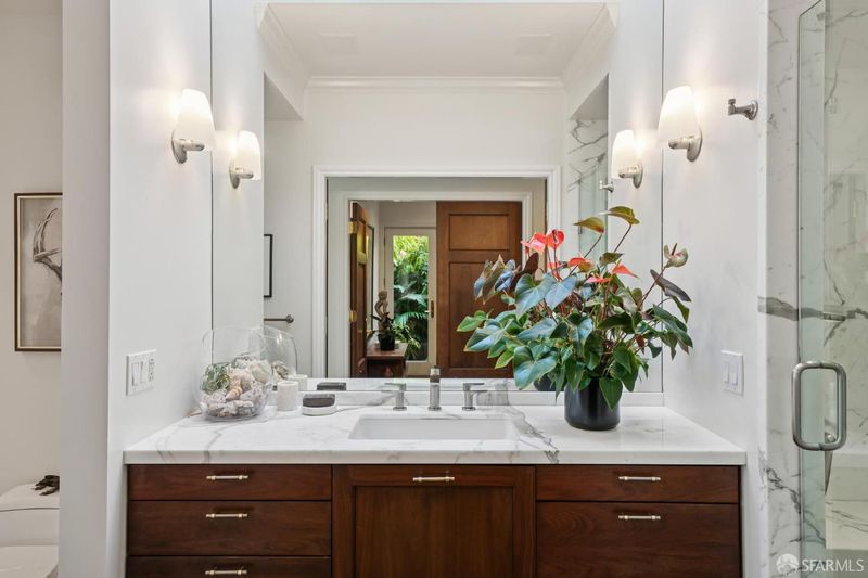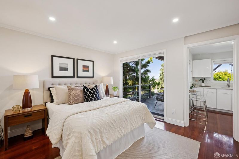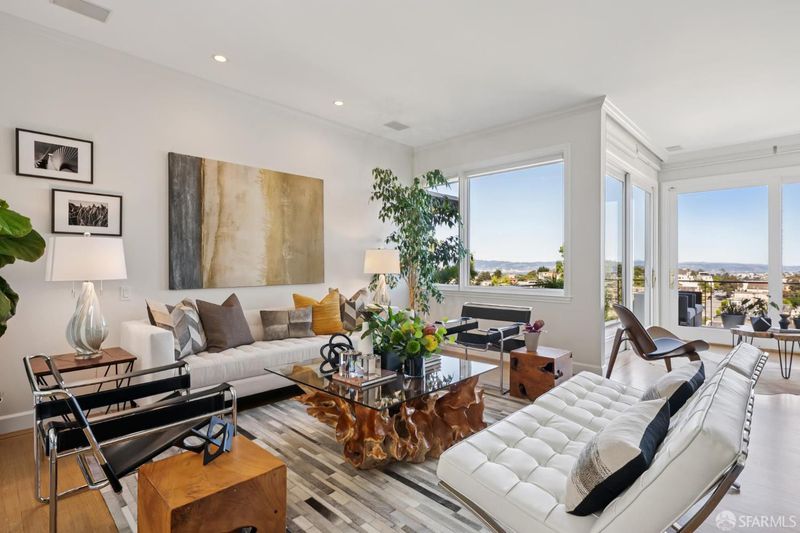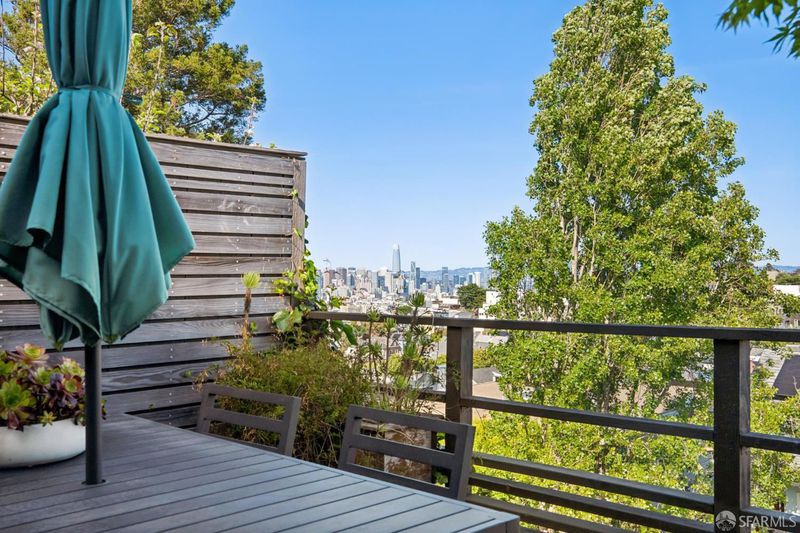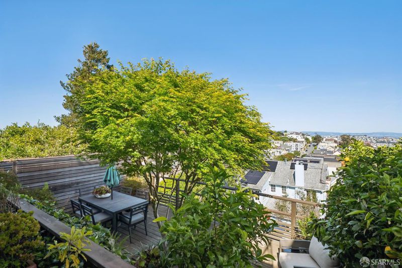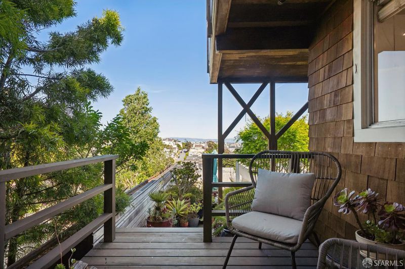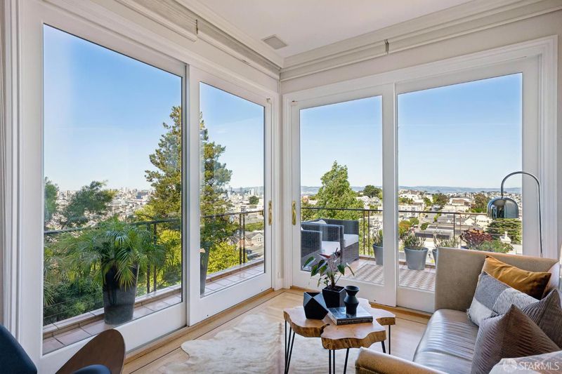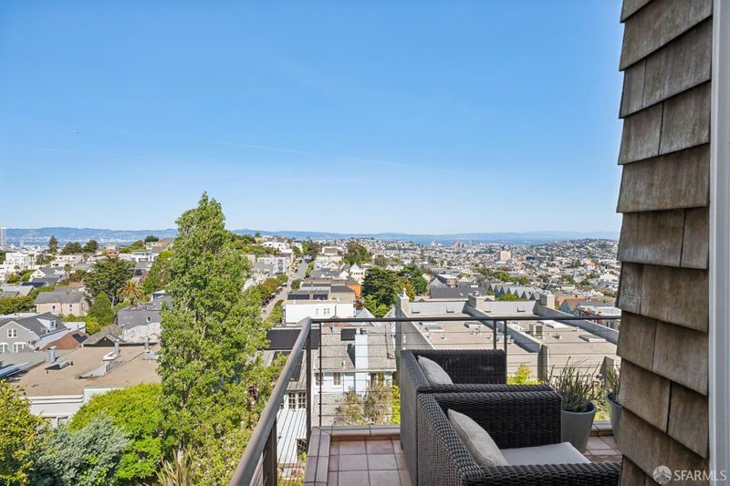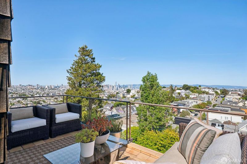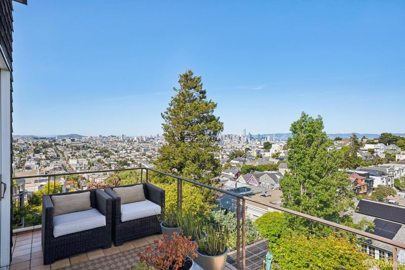 Conveniently positioned between Noe Valley and the Castro, this classic 30's home has been reconfigured to take full advantage of its hilltop location and extraordinary panoramic views. The generous main living level is enhanced by 9 foot ceilings, architectural skylights and an open floor plan that captures views of the San Francisco skyline, the Bay and well beyond. The renovated kitchen and bathrooms combine a modern sensibility with quality materials to create a clean and elegant ambiance. A large breakfast bar works great for casual dining while integrating the main living spaces for easy entertaining. The recently renovated primary suite features a fireplace, parquet hardwood floors, abundant custom closets and a newly added primary bathroom with walk-in rain shower. The second bedroom is conveniently positioned opposite another full bath which includes an over-sized shower and soaking tub. A dramatic light-filled stairway leads to the lower floor featuring a third bedroom suite configured for flexible functions. Also accessible privately from the street, this living space offers a great way to accommodate long-term guests or to generate rental income. Both living levels are extended by comfortable connections to multi-level east-facing decks, great for entertaining and enjoying the panoramic city views. The professionally designed landscape includes prolific mature lemon tress and a sculptural Japanese Maple. Once the home of Wilkes Bashford, a well-known clothing retailer and socialite of the Herb Caen era, the home includes vestiges of his fine taste and stature in San Francisco Culture. Hi-lights include a striking wall of custom walnut casework in the living room, and a 'Wilkes' outfitted walk-in closet. The home offers many systems upgrades including a recently replaced sewer line to the street, a newly refurbished roofing system, an outlet for fast car charging in the garage and a new 200 amp electrical service upgrade for future needs. The urban location is just a few blocks to the vibrant dining and nightlife of Castro Village and the shops and restaurants of 24th Street in Noe Valley. Seller is a CA licensed real estate agent. URL: collingwoodhilltophome.com for more info.