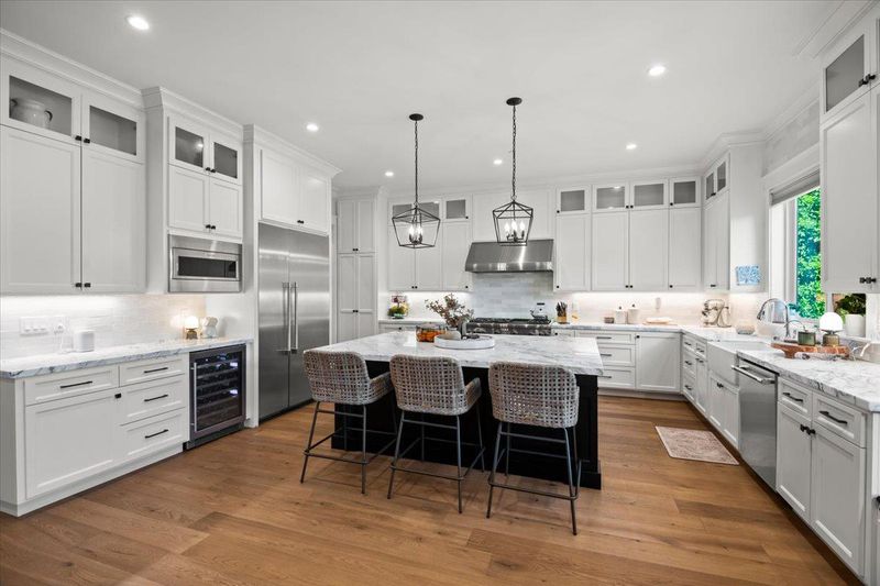 Countertop - Other, Dishwasher, Cooktop - Gas, Freezer, Garbage Disposal, Hood Over Range, Island, Microwave, Pantry, Exhaust Fan, Warming Drawer, Wine Refrigerator, Refrigerator, Oven - Gas