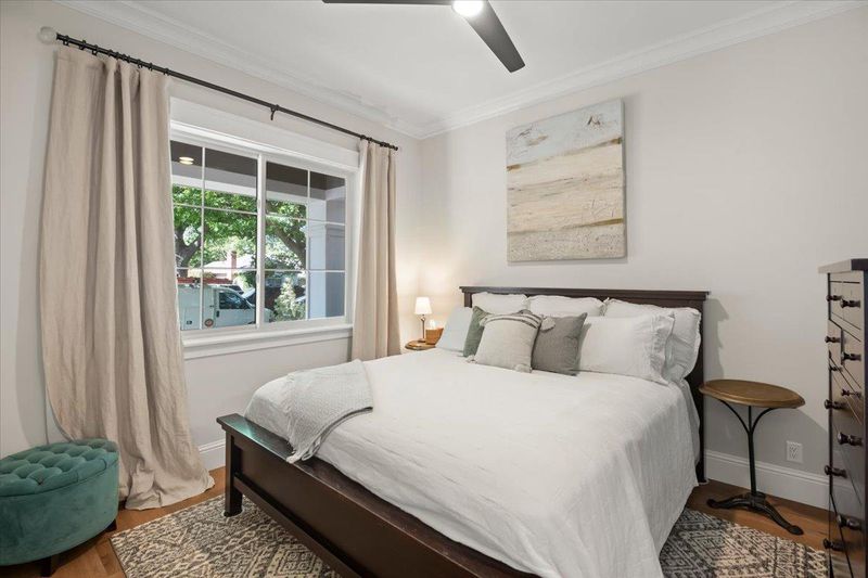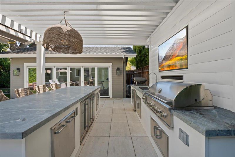 Nestled in the heart of Willow Glen, this stunning custom residence by Latala Homes in 2020 redefines contemporary elegance w/ timeless sophistication. Spanning approximately 4,176 square feet, the home boasts six bedrooms & five baths, including a thoughtfully designed detached 384-square-foot ADU perfect for guests, extended family, or a private retreat. The gourmet chefs kitchen is a masterpiece of form & function, featuring marble countertops, bespoke cabinetry, an expansive island w/ abundant storage, premium stainless steel appliances, & a butlers pantry. This open-concept space flows seamlessly into the grand great room, where vaulted ceilings, recessed lighting, and a welcoming fireplace create an atmosphere of refined comfort. The luxurious primary suite offers a custom walk-in closet, & a spa like en-suite bath with/ a deep soaking tub, & a glass shower. Entertain & dine in luxury in the centerpiece dining room w/ a glass wall wine cellar. Expansive stacking glass doors from the great room & custom entertainment center open to a meticulously landscaped backyard oasis featuring a custom pool, firepit, outdoor BBQ bar, stamped concrete patio, and lush artificial turf that remains vibrant year-round is ideal for entertaining, family gatherings, or quiet relaxation.