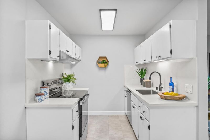 - 220 Volt Outlet, Countertop - Quartz, Dishwasher, Garbage Disposal, Hood Over Range, Oven Range - Electric