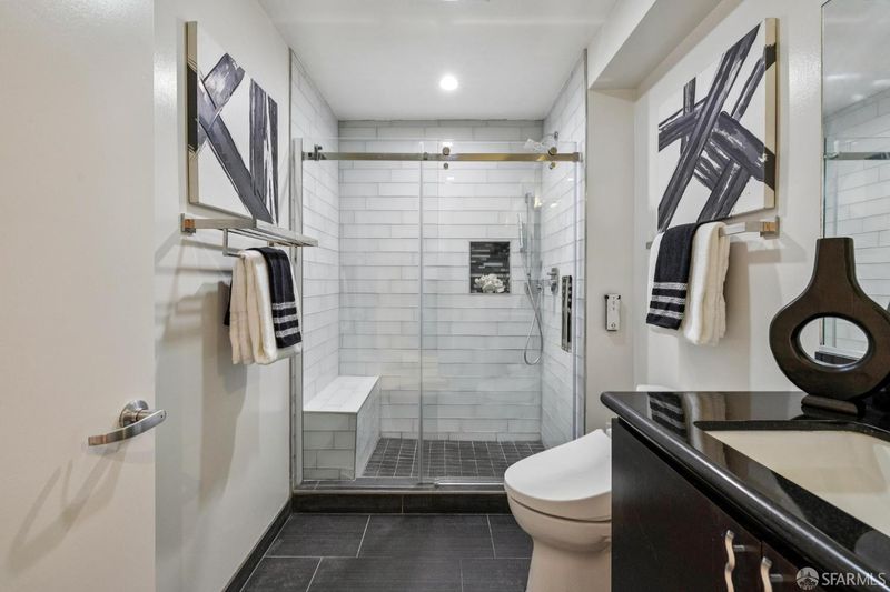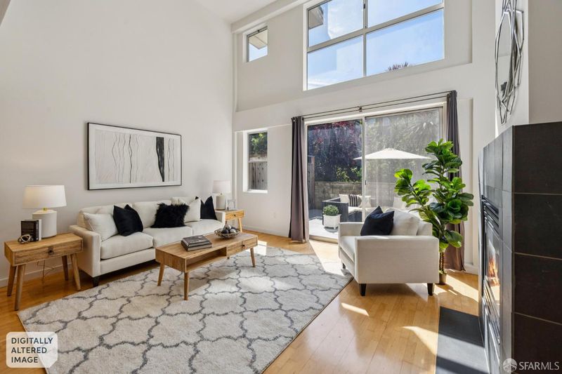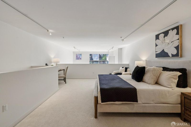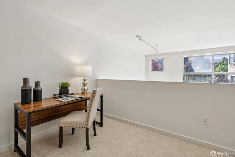 Welcome to this sophisticated two-level live/work loft in the heart of San Francisco's vibrant Inner Mission. This 1-bedroom plus office residence offers modern design with exceptional indoor/outdoor living. The main level showcases soaring ceilings and dramatic walls of windows, filling the space with natural light. An open-concept floor plan seamlessly connects the living and dining areas, anchored by a sleek gas fireplace and extending to a spacious private patio overlooking a tranquil gardenan ideal setting for entertaining or relaxing in the sun. The well-appointed kitchen features stainless steel appliances, granite countertops, stylish cabinetry, and a breakfast bar that flows effortlessly into the formal dining area. A coat closet with custom organization system, expansive pantry with additional storage beneath the stairs, and a built-in wine refrigerator provides convenience. A full bathroom and full-size side-by-side washer and dryer complete the main level. Upstairs, the lofted bedroom retreat offers a sliding-door closet plus ample space for a home office area. An additional room off of the sleeping area is perfectly suited for an office or guest bedroom and is currently configured as a large walk-in closet with a custom organization system. The upper-level full bathroom features a beautifully remodeled, modern shower. Additional highlights include wood flooring, beautiful new carpet on the stairs and upper level, and fresh interior paint throughout. Enjoy a secure garage with one deeded parking space with additional storage. Residents also enjoy high- speed internet that is included in the HOA dues, plus access to a shared rooftop deck with stunning city views. Located in the dynamic Mission District, this home places you just moments from renowned destinations like Flour + Water, Tartine Bakery, Atlas Caf, and Gus's Community Market, as well as the lively Valencia Corridor. With easy access to BART, Muni, tech shuttles, and freeways, this is truly a commuter's dream. Enjoy some of the best weather San Francisco has to offer while living in one of its most energetic and sought-after neighborhoods with a walk score of 98!