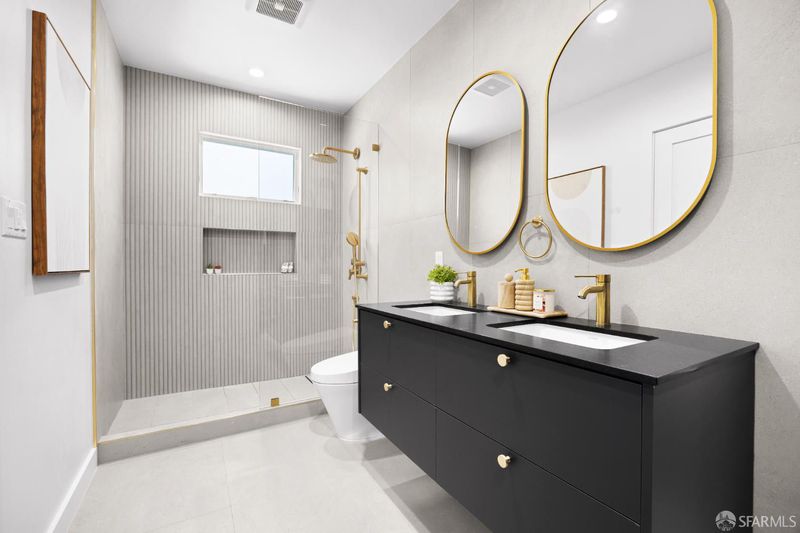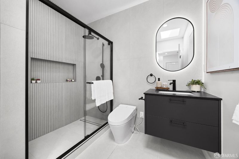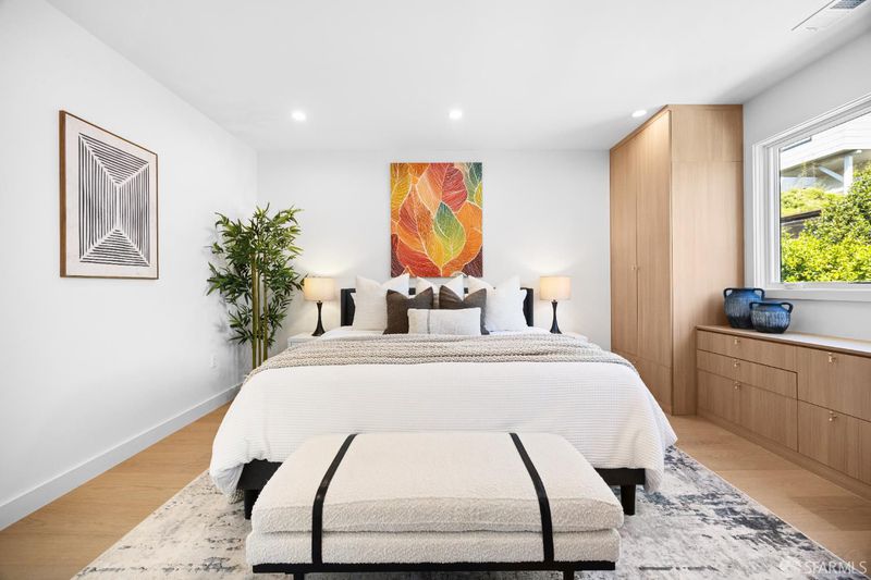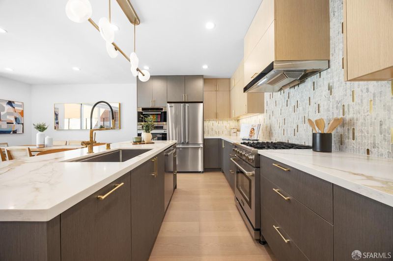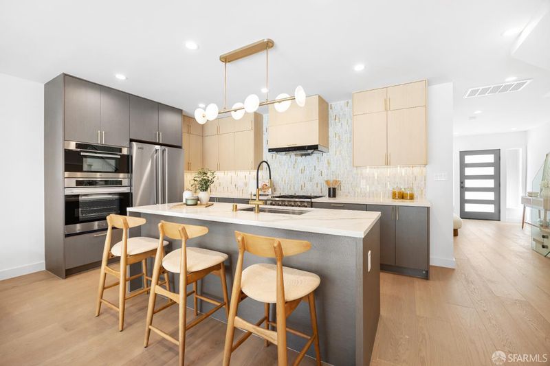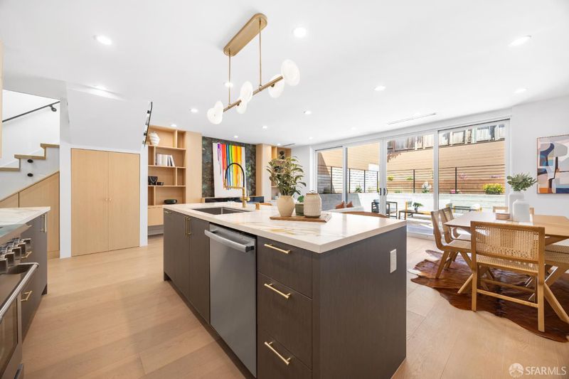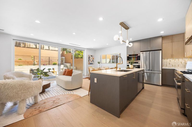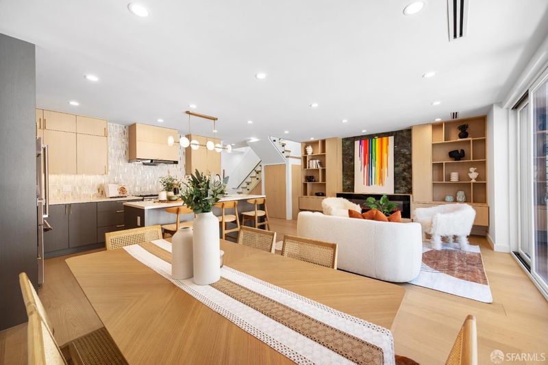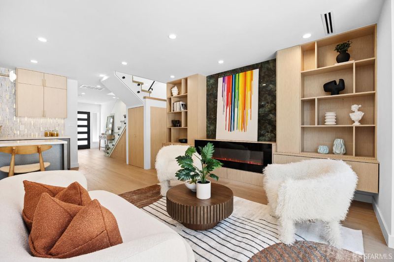 Reimagined with a bold, design-forward vision, this fully renovated Bernal Heights residence offers 3 bedrooms, 2 baths, and 1,739 square feet of elevated living where modern sophistication meets everyday functionality. Behind its refreshed exterior, complete with a new roof, windows, electrical, and plumbing, the home unfolds into a dramatic open-concept main level, anchored by a sleek electric fireplace framed by custom built-ins and a striking wall of windows and sliding doors that seamlessly connect to the backyard, creating effortless indoor-outdoor flow. The kitchen is both sculptural and highly functional, overlooking the dining area and outfitted with custom cabinetry, a statement backsplash, and an expansive quartz island designed for gathering. Premium appliances include a Robam 5-burner range with steamer, oven, and dishwasher, complemented by a Viking refrigerator, delivering both performance and style. Thoughtful details are woven throughout, from custom under-stair storage to tailored millwork, while a chic powder room adds a touch of flair to the main level. A glass-railed staircase with integrated step lighting leads to the upper level, where a generous landing introduces three well-appointed bedrooms, each with custom closets. The primary suite is a true retreat, overlooking the backyard and featuring a spa-inspired ensuite with soaking tub, luminous walk-in shower, dual vanity, and built-in storage. Two additional sunlit bedrooms are positioned at the front of the home, accompanied by a beautifully finished hall bath with skylight and linen cabinetry. Outside, the terraced backyard offers a low-maintenance escape with a spacious patio ideal for entertaining or unwinding. A one-car garage with storage and EV charging completes the home. Perfectly positioned in the heart of Bernal Heights, this home places you moments from a vibrant mix of neighborhood cafes, acclaimed dining, and locally loved boutiques along Cortland Avenue. Spend weekends relaxing at one of the several nearby parks, browsing seasonal offerings at the Alemany Farmers Market or taking in sweeping city views from Bernal Heights Park. For commuters, convenient access to HWYs 101 and 280, as well as nearby Muni lines and Glen Park BART makes travel throughout San Francisco and the Peninsula seamless. This is a location that truly balances neighborhood charm with citywide connectivity.