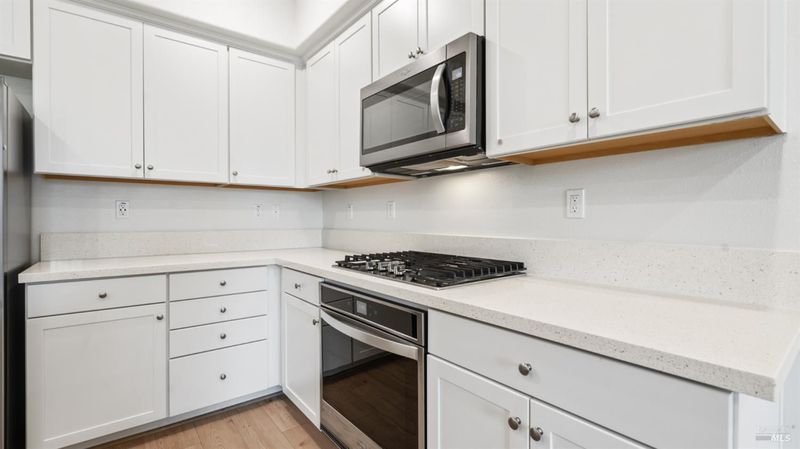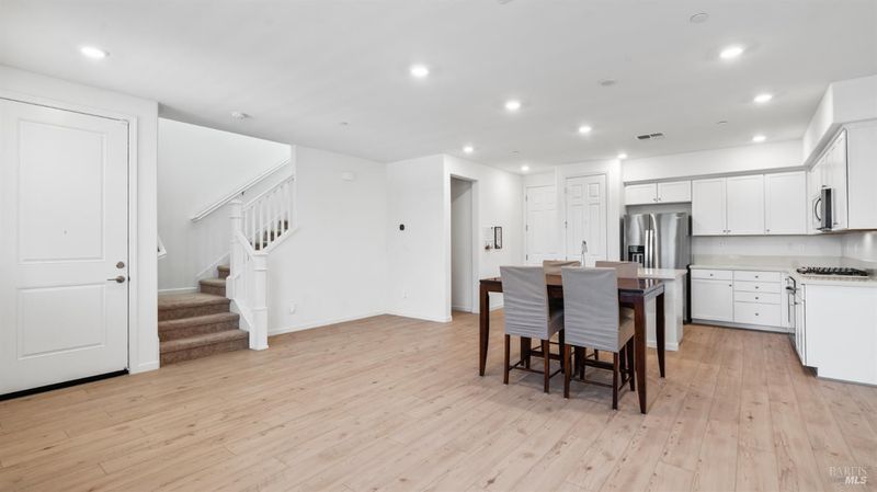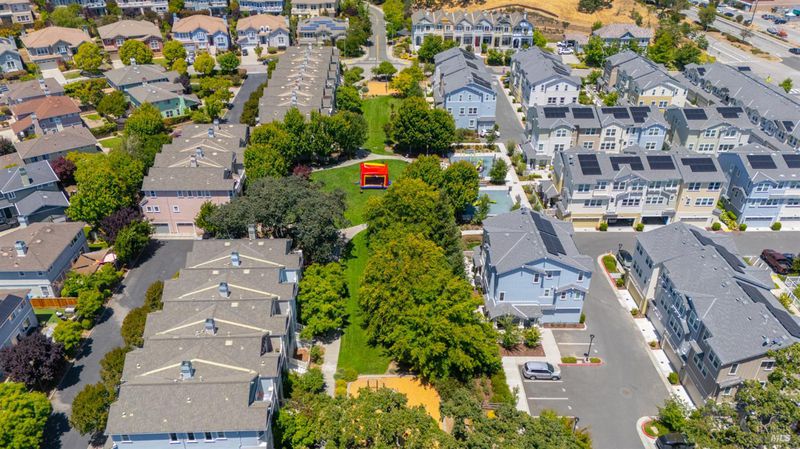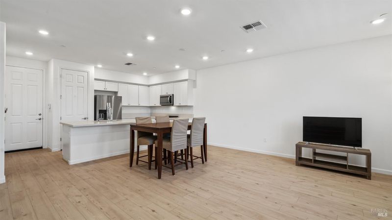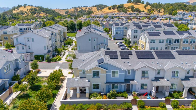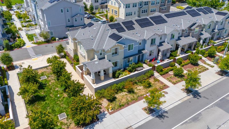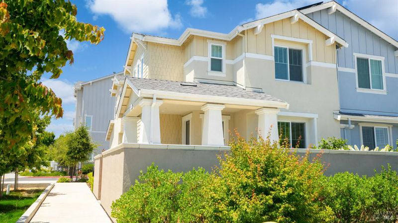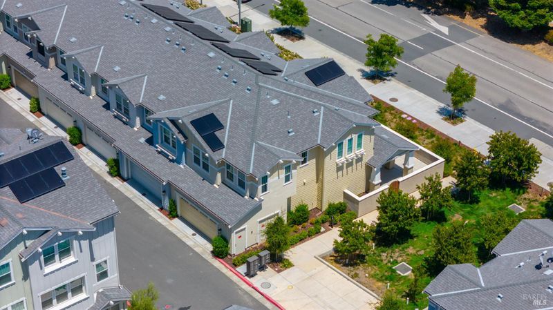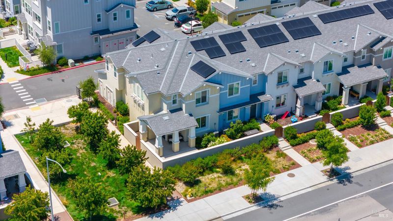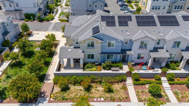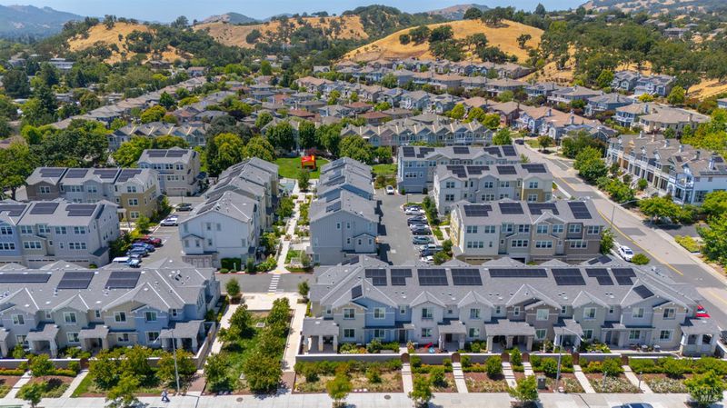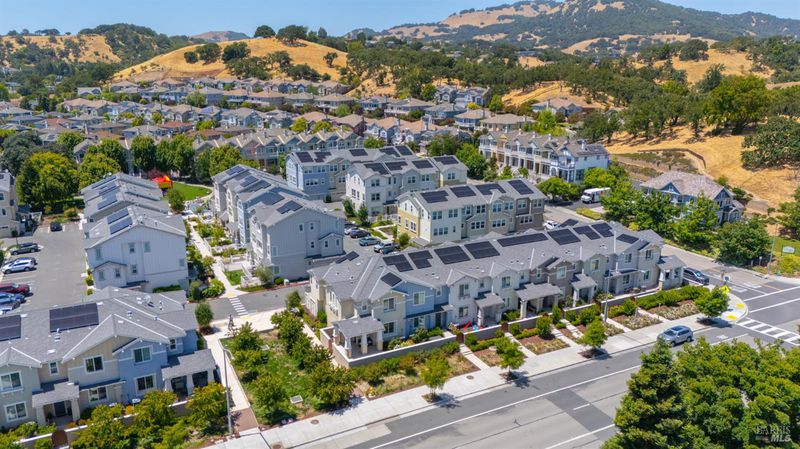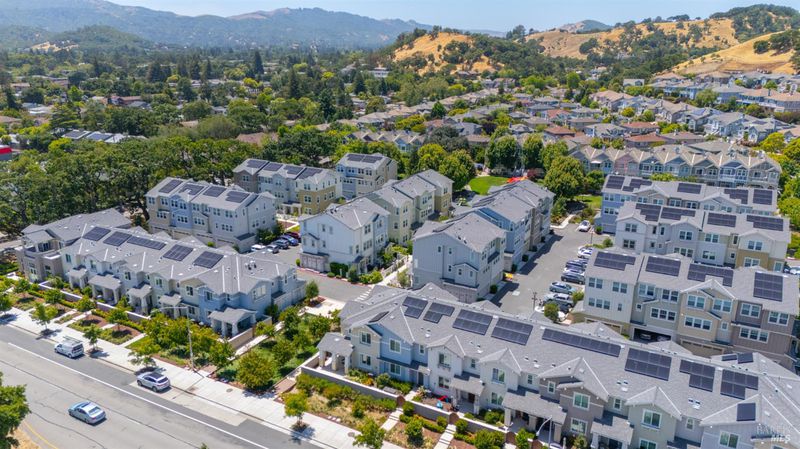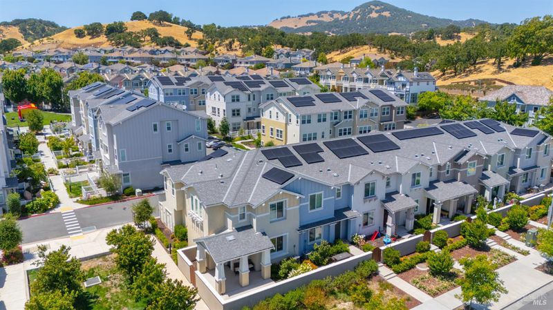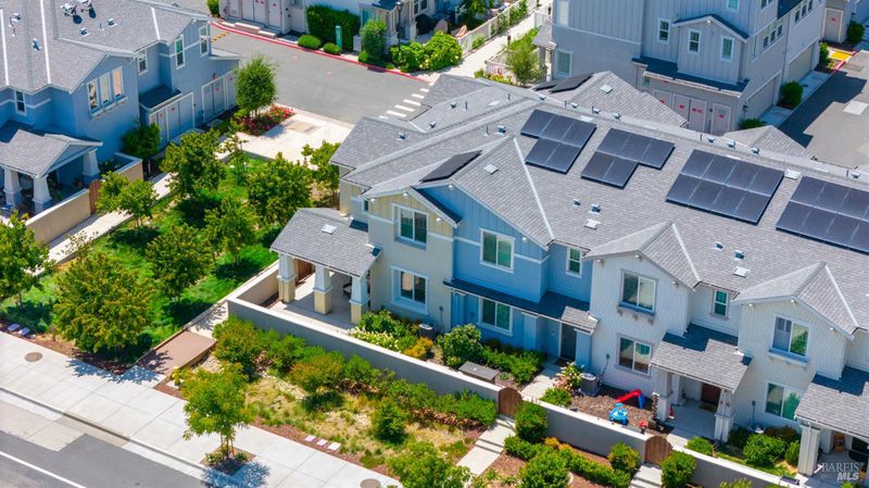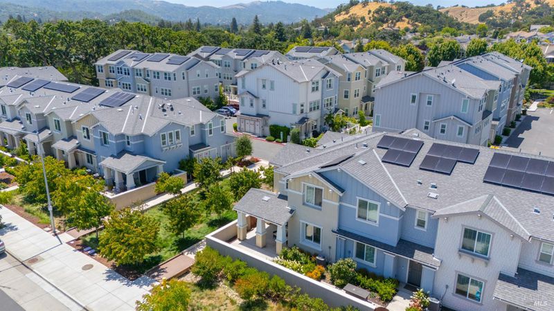 Contemporary urban living meets hometown style 2 blocks from vibrant downtown Novato. This chic 2021-built 2-story Atherton Place townhome offers beautifully designed, sustainable living. The main level features an open-concept great room with a spacious island kitchen and light-filled living area with high ceilings and luxury vinyl plank flooring. Half bath has pedestal sink. The private front courtyard with covered porch invites easy indoor-outdoor living. Upstairs, the primary suite boasts an ensuite bath with dual sinks, while two additional bedrooms, second full bath, and a laundry room complete the upper level. Energy-efficient smart home features include EnergyStar appliances, solar electric (owned), tankless water heater, heat pump (for heating & cooling), Cat-6 wiring for high-speed internet, smart thermostat, and KPS Alarm system. 2-car side by side garage has an EV charger. Enjoy an unbeatable location across from Trader Joe's & Starbucks & minutes to Olive Elementary, trails, parks, dining, shops, and all the outdoor fun Novato has to offer. Easy access to the SMART Train and Highway 101 makes commuting a breeze. It's your opportunity to reduce your carbon footprint with style!