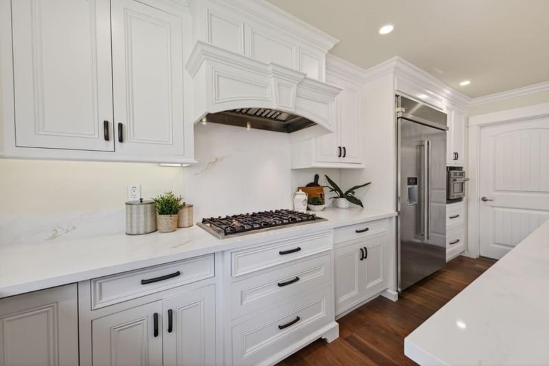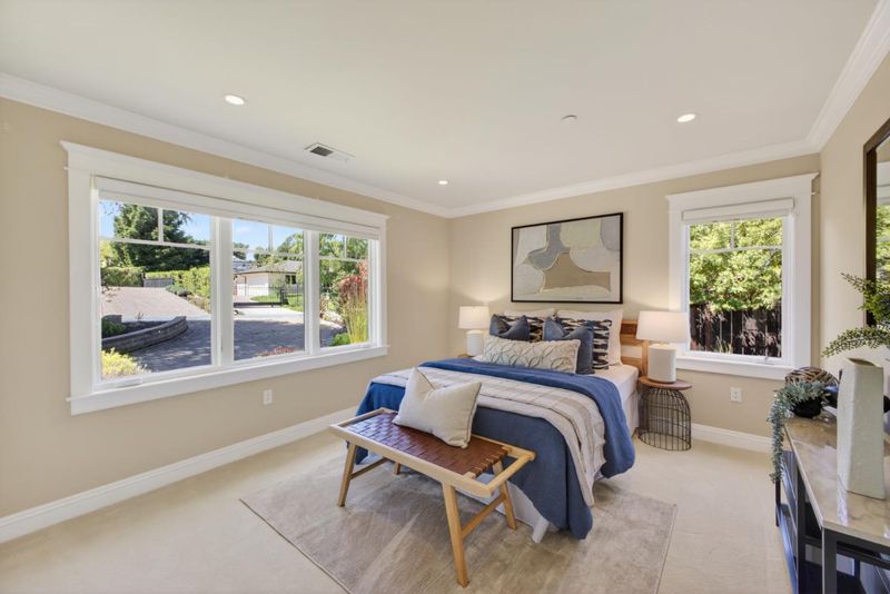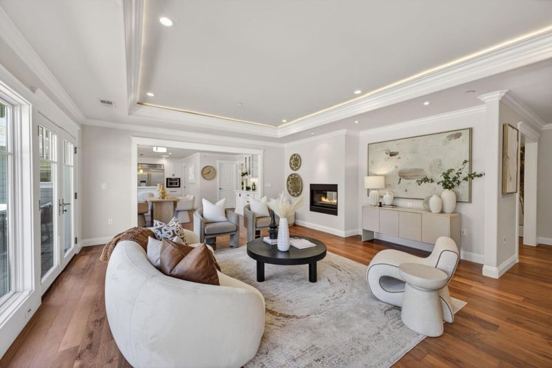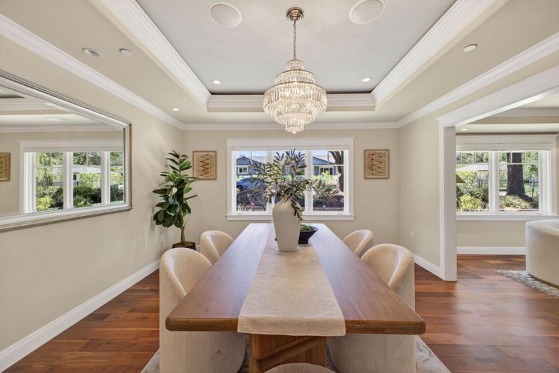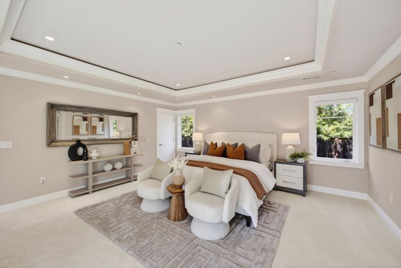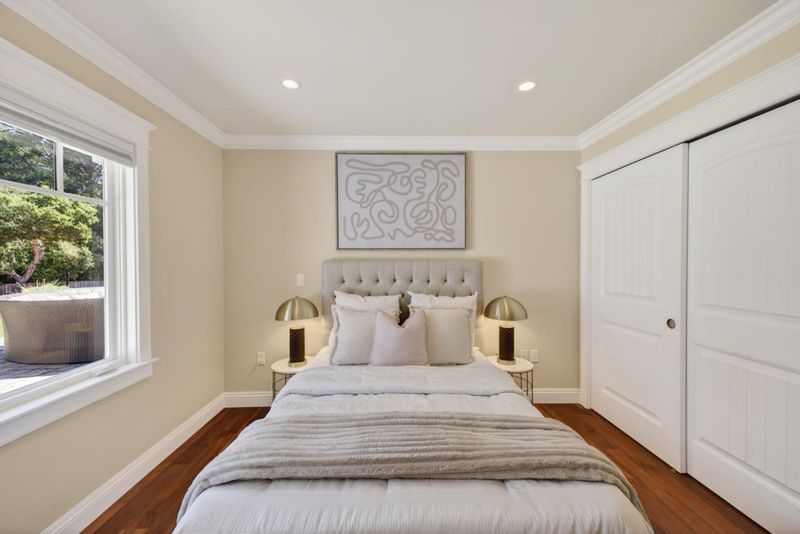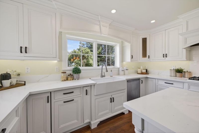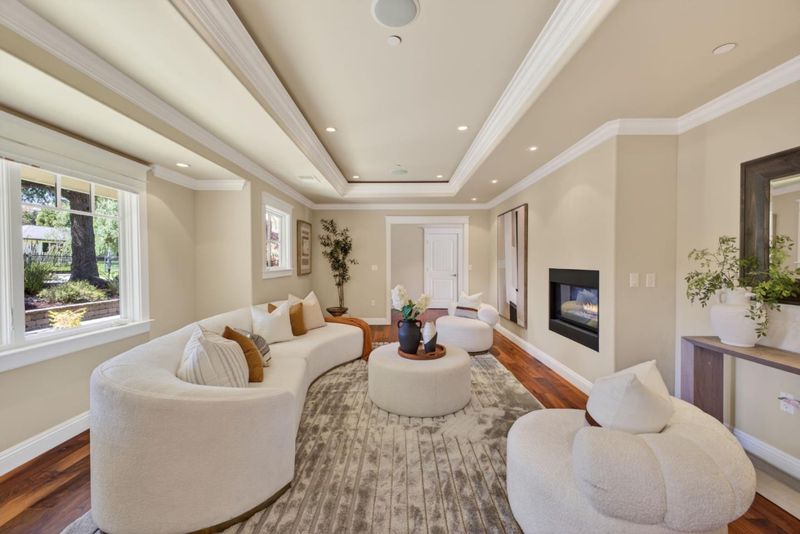 A MUST SEE, BEST OF THE BEST! Set on a flat, park-like half-acre lot, this beautifully renovated and expanded single-story home blends timeless elegance with modern functionality. A circular paver driveway leads to a covered front porch while also extending to a spacious motor court, providing access to a side-entry three-car garage with 2 Tesla EV chargers. Inside, hardwood floors and recessed lighting enhance a thoughtfully designed layout. A formal living room with a dual-sided fireplace--shared with the family room--flows into the formal dining area. The updated chef's kitchen features quartz countertops, a large island, stainless-steel appliances, abundant cabinetry, and a breakfast nook with a nearby powder room. French doors in the family room open to an expansive patio for seamless indoor-outdoor living. The private wing offers four bedrooms and four updated baths, including a luxurious primary suite with backyard access, dual walk-in closets, & a spa-like bath with soaking tub and glass shower. Grounds include turf lawns, a studio with kitchenette and powder room, a deck, and a pickleball court beneath a sport surface. Solar panels and a Tesla Powerwall add efficiency. 1510 Kingswood Dr represents the very best of Hillsborough living. Don't miss this turnkey masterpiece.